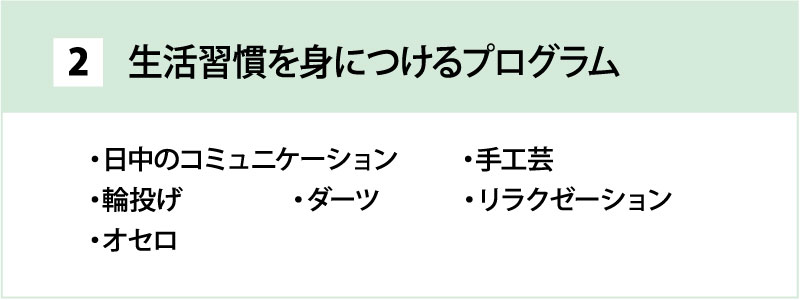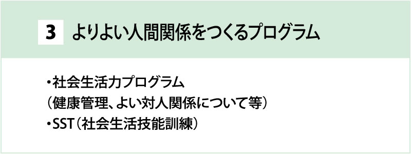 当施設の専門員とともに、様々なプログラムで自立した生活を目指していきましょう。